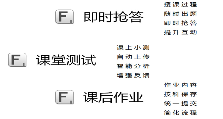 無線答題系統(tǒng)能快速、有效地診斷和反饋學(xué)情,幫助教師及時(shí)調(diào)整教學(xué)策略,增加學(xué)生課堂互動(dòng)參與與興趣,全面記錄學(xué)生課堂互動(dòng)情況,輔助對(duì)學(xué)生進(jìn)行全面、多維、有效評(píng)價(jià),提高課堂教學(xué)質(zhì)量與效率,活躍課堂氣氛,增加課堂趣味性,實(shí)現(xiàn)“寓教于樂”。